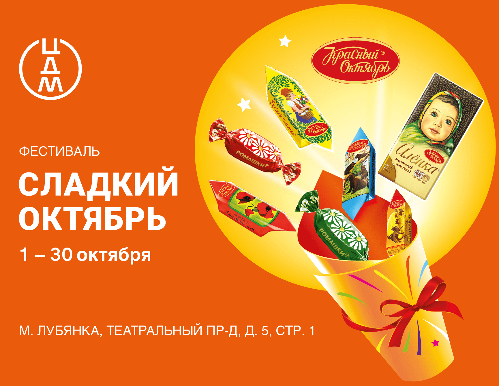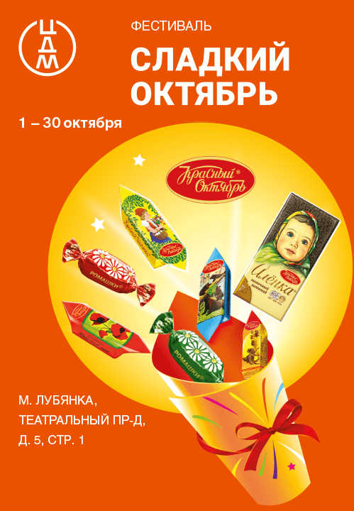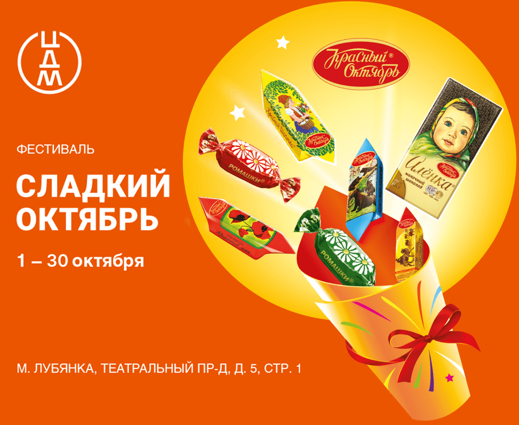 1–30 октября в Центральном Детском Магазине на Лубянке пройдет фестиваль «Сладкий Октябрь». Основные события фестиваля развернутся на первом этаже в главном атриуме. В будни фестиваль открыт с 10 до 22, в выходные праздничная программа проходит с12 до 20.